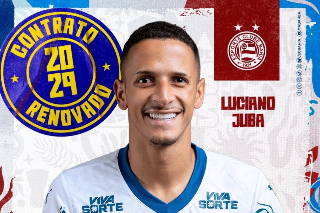 O Bahia oficializou, neste sábado, a renovação de contrato do lateral-esquerdo Luciano Juba, que agora permanece ligado ao clube até 2029. A extensão reforça o planejamento do Esquadrão de Aço para as próximas temporadas.
