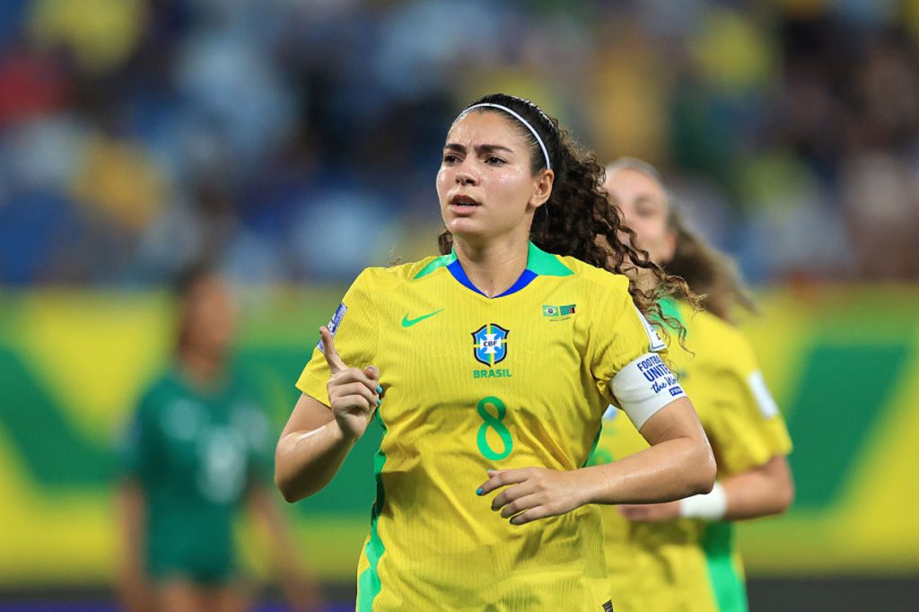 O Brasil já havia levado perigo, é verdade, mas o lance que mudou de fato a história do jogo aconteceu quando a goleira Nali saiu da área para fazer corte e tocou com a mão na bola. Ela foi expulsa e o Brasil saiu na frente logo em seguida.