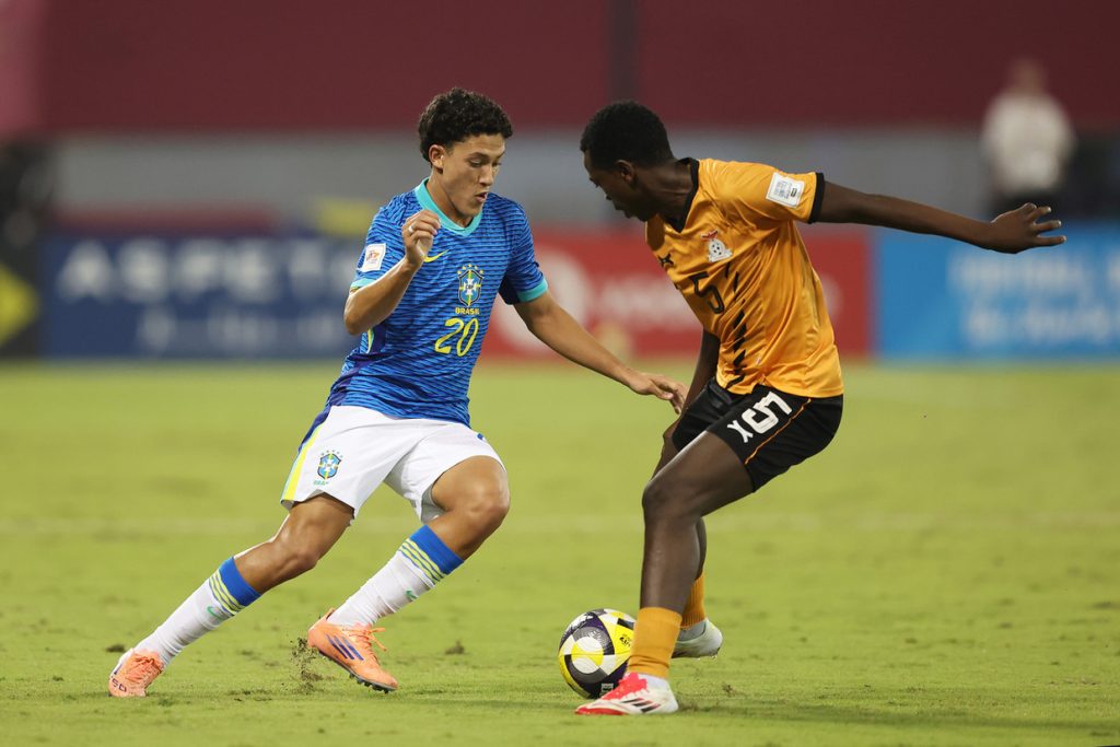 Zâmbia abriu o placar aproveitando uma bobeira da zaga brasileira em lance bizarro. Kalimina cobrou escanteio fechado na área, Arthur Ryan, que estava na primeira trave, deu um passo adiante e tirou o corpo para deixar a bola passar, e ela acabou no fundo da rede…