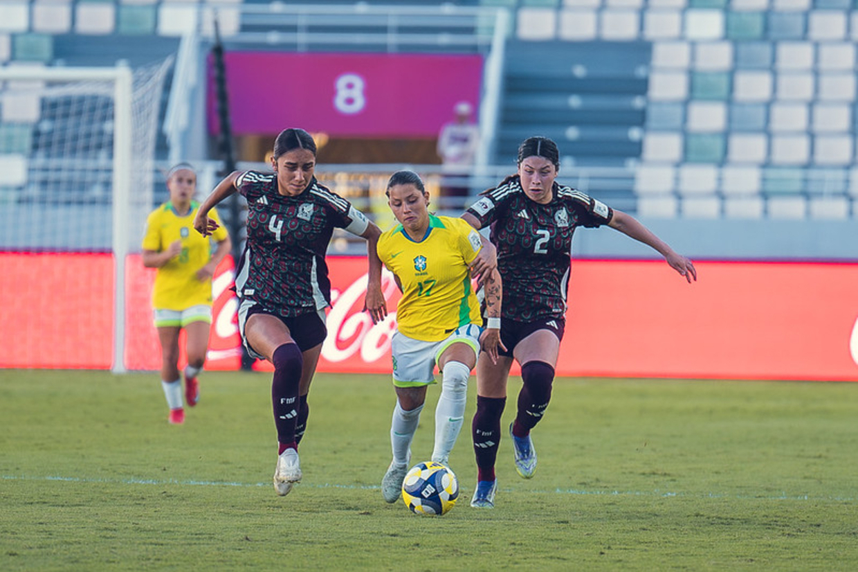 Eliminada pela Coreia do Norte na semifinal, a seleção brasileira saiu na frente com Kaylane, após passe de Gaby Pusch. Só que as mexicanas arrancaram o empate já nos acréscimos, com em cabeçada de Evelin em gol contra.
