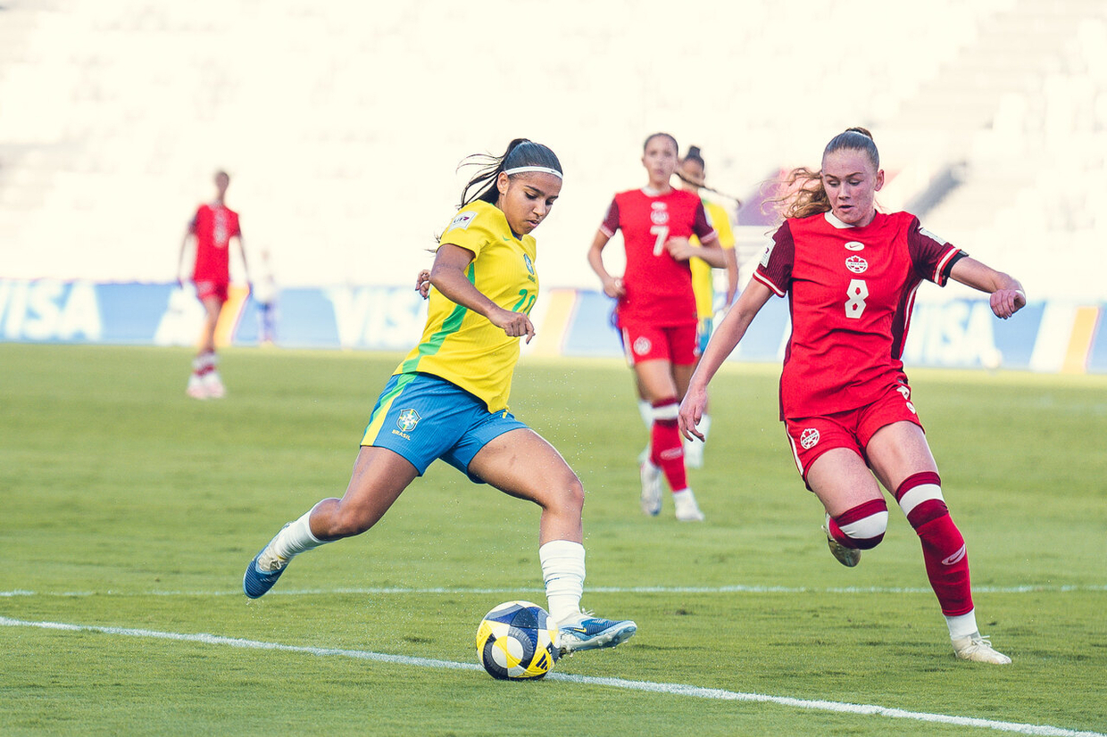 A seleção feminina está na semifinal do Mundial Sub-17. No Marrocos, o Brasil driblou o favoritismo do Canadá, segurou o empate no tempo normal e garantiu a classificação nas penalidades.