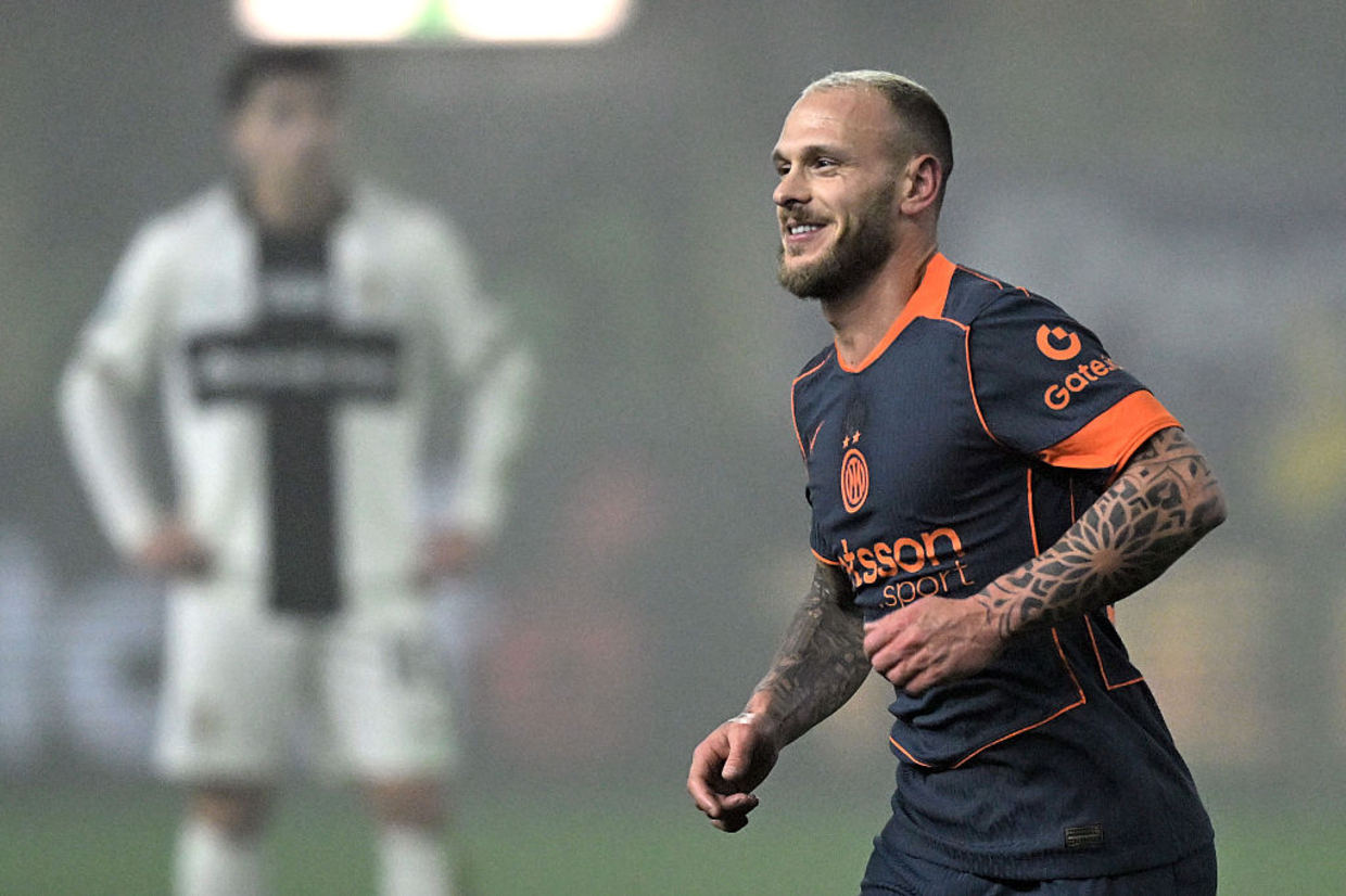 Ainda antes do intervalo, Dimarco tabelou na canhota, mandou na área e, depois de ajeitar, o ala mandou para a rede. A arbitragem chegou a anular em um primeiro momento, mas o VAR confirmou o tento.