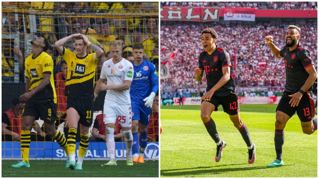 In a thrilling conclusion to the Bundesliga season, Bayern Munich won their 11th title in a row, while Dortmund faltered under pressure to draw with Mainz. Dortmund went into the final matchday two points clear of Bayern, but their hopes were dashed when Mainz took a shock two-goal lead in the first half, compounded by a missed penalty from Dortmund’s Sebastian Haller.