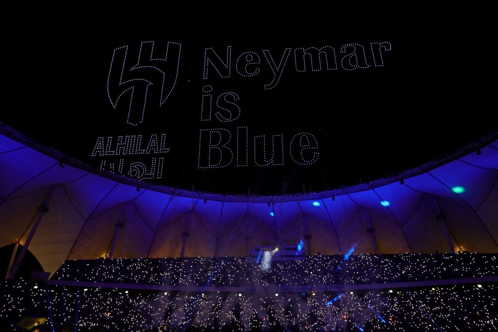 Neymar’s arrival at Al-Hilal was a real spectacle, as the striker was presented at the King Fahd Stadium in Riyadh on Saturday (19). The venue was packed with an estimated 68,000 people, who watched an elaborate mosaic and a display of drones with Neymar’s face and the phrase “Neymar is blue”. The Brazilian striker signed a two-season contract with the Arab club, worth 160 million euros (approximately R$865 million). His journey from Paris to Riyadh was equally remarkable, in a Saudi royal family plane worth R$1 billion, receiving a warm welcome from the Saudi fans.