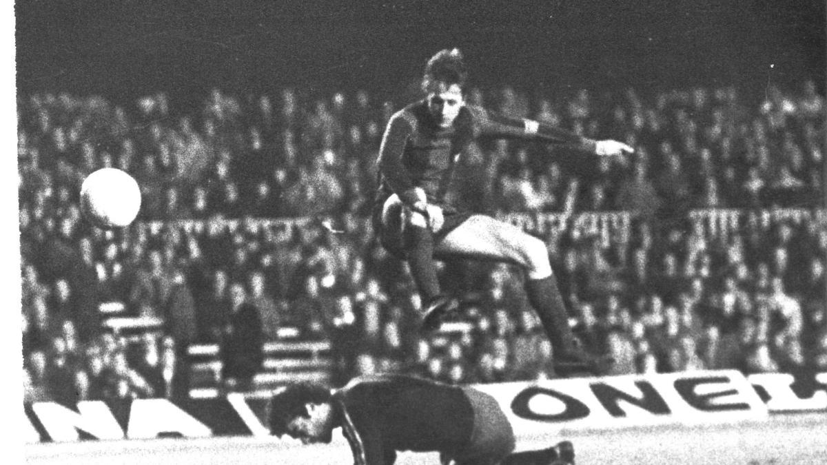“A los 25 minutos, centro de Neeskens desde la derecha, Camús y Cruyff saltan a por el balón y el azulgrana logra rozarlo, desviándolo. 1-0″.