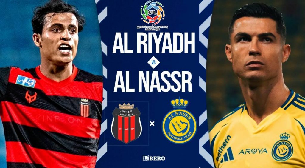 Fútbol InternacionalAl Nassr vs Al Riyadh EN VIVO por la Liga Profesional Saudí: TRANSMISIÓN del partidoSin Cristiano Ronaldo, Al Nassr se enfrenta a Al Riyadh EN VIVO HOY desde el Prince Turki bin Abdul Aziz Stadium, por la fecha 20 de la Liga Profesional de Saudí,Partidos de hoy EN VIVO, lunes 2 de febrero: programación y dónde ver transmisiónAlianza Lima vs 2 de Mayo: fecha y hora oficial del partido por Copa LibertadoresJasmin HuamanActualizado el 2 Feb. 2026 | 10:51 HAl Nassr de Cristiano Ronaldo visita al Al Riyadh por la Liga Profesional Saudí. | Foto: Composición LíberoCOMPARTIR Siguenos en Google News VER AQUÍ Al Nassr vs Al Riyadh EN VIVO ONLINE GRATIS | Tras derrotar al Al Kholood como visitante, el Al-Nassr buscará un nuevo triunfo, pero esta vez ante el Al Riyadh, equipo que está entre los últimos puestos de la tabal general. Este enfrentamiento es parte de la fecha 20 de la Liga Profesional de Saudí que tiene como líder absoluto al Al-Hilal. Conoce por dónde se podrá ver el partido EN VIVO y EN DIRECTO, horario y pronóstico. PUEDES VER: Al Nassr de Cristiano Ronaldo en negociaciones para jugar en Perú y se filtró el posible rival Al-Nassr vs Al Riyadh EN VIVO ONLINE: alineaciones confirmadas Al-Nassr: Bento; Sultan, Simakan, Iñigo, Saad; Alhassan, Ângelo, Ayman, Ghareeb; Mané y João Félix. Once de Al Nassr. Al Riyadh: Milan Borjan; Osama Al-Bawardi, Mohammed Al-Khaibari, Juan Barit, Abdellah Al-Khaibari, Ismaila Soro, Sergio González, Ahmed Al-Saidi, Anthony Tosi, Titi Okou y Sultan Haron. Once de Al Riyadh. ¿Dónde ver Al Nassr vs Al Riyadh EN VIVO ONLINE GRATIS? Para poder disfrutar del partido entre Al Nassr vs. Al Riyadh EN VIVO como parte de la nueva fecha de la Liga Profesional Saudí, vas a tener que considerar los siguientes canales de transmisión oficial, según el país donde estés. Brasil: SporTV, BandSports, Globoplay, Zapping, Claro TV Plus, Canal GOAT, Sky Plus, Vivo Play.Arabia Saudita: Thmanyah, Jaco.México: FOX One.España: Movistar Plus, Movistar Liga de CampeonesEstados Unidos: Fox Sports 2, futboTV, FOX Deportes y Fox One. ¿A qué hora juega Al Nassr vs Al Riyadh HOY? A continuación, te compartimos los horarios confirmados en los que podrás disfrutar el partido desde diferentes partes del mundo para que no te pierdas ningún incidente entre el Al Nassr vs Al Riyadh por la jornada 20 de la Liga Profesional Saudí. Perú, Ecuador y Colombia: 10:15 a.m.Bolivia y Venezuela: 11:15 a.m.Paraguay, Uruguay, Brasil y Argentina: 12.15 p.m.México y Centroamérica: 9:15 a.m.España: 4:15 p.m. Al Nassr y Al Riyadh EN VIVO ONLINE Al Nassr busca el título tras varias temporadas y llevarse una victoria en su visita al estadio del Al Riyadh. Lo cierto es que la realidad para ambos equipos es diferente. Por un lado está el Al Nassr que es segundo en la clasificación con 43 puntos, solamente siendo superado por el Al-Hilal con 46 y llega en una racha de victorias. Por otro lado, está el Al Riyadh que está entre las últimas posiciones de la liga y como locales no conocen la victoria desde hace más de 5 fechas. Al Nassr vs Al Riyadh: pronóstico y cuánto paga Antes de iniciar el partido, a pesar de jugar como visitante, el equipo del Al Nassr es considerado como el gran favorito para quedarse con la victoria y los tres puntos ante el Al Riyadh. Estas son las cuotas de las casas de apuestas. Casa de apuestaAl RiyadhEmpateAl Nassrbetsson9.806.501.21Betano12.006.601.22bet36510.006.501.221XBET10.207.101.15coolBET13.007.001.20DoradoBet12.007.001.18 ¿Dónde se juega el Al Nassr vs Al Riyadh?