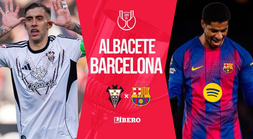 En la previa del partido, se conoció que ambos equipos llegan con bajas importantes. El el equipo blaugrana, Hansi Flick no podrá contar con Christensen, Gavi, Pedri y Raphinha. Todos ellos por lesión. Además, en el Albacete no estarán a disposición Cedeño, García, López, Martín y Pepe. Flick no se fía de la inferioridad de los manchegos, por lo que afronta con seriedad este encuentro. Más allá de las dificultades, el DT alemán planea mandar un equipo combinado y darle protagonismo a jugadores como Cancelo, Marc Bernal y Rashford. Barcelona vs Albacete: hora México: 2.00 p.m.Perú: 3.00 p.m.Ecuador: 3.00 p.m.Colombia: 3.00 p.m.Bolivia: 4.00 p.m.Venezuela: 4.00 p.m.Estados Unidos (Nueva York, Miami y Washington): 4.00 p.m.Argentina: 5.00 p.m.Brasil: 5.00 p.m.Uruguay: 5.00 p.m.Paraguay: 5.00 p.m.Chile: 5.00 p.m.España: 9.00 p.m. Barcelona vs Albacete: canal y dónde ver En Perú puedes disfrutar de la transmisión de la Copa del Rey por Movistar Deportes (canal 3); sin embargo, también está la opción de mirar en vivo y completamente gratis por la señal abierta de América TV (canal 4). Colombia: RCN Television, Deportes RCN En Vivo, Win PlayEcuador: Canal del FútbolEspaña: TVE La 1, TV3, RTVE Play, Movistar+, fuboTV España, 3CatMéxico: Sky Sports, Sky+, izziPerú: Movistar Deportes Perú, América TVUruguay: Flow TVEE. UU.: ESPN Select, fuboTV, ESPN App Barcelona vs Albacete: pronóstico y apuestas APUESTASALBACETEXBARCELONABETSSON14.507.401.18BETANO16.007.301.211XBET12.207.301.23 Barcelona vs Albacete: alineaciones Albacete: Raúl Lizoain; Aguado, Javi Moreno, Vallejo, Carlos Neva, Bernabéu; Capi, Meléndez, Pacheco; Medina y Betancor. Barcelona: Joan García; Cancelo, Araujo, Eric García, Gerard Martín; Casadó, Marc Bernal, Dani Olmo; Roony, Lewandowski y Rashford. Barcelona vs Albacete: últimos resultados Barcelona 2-0 AlbaceteAlbacete 1-2 BarcelonaBarcelona 5-0 Albacete Barcelona vs Albacete: árbitros Principal: José Luis MunueraAsistente 1: Antonio RamónAsistente 2: Adrián DíazCuarto: Juan Antonio ManriqueVAR: Valentín PizarroAVAR: Daniel Trujillo Barcelona vs Albacete: estadio