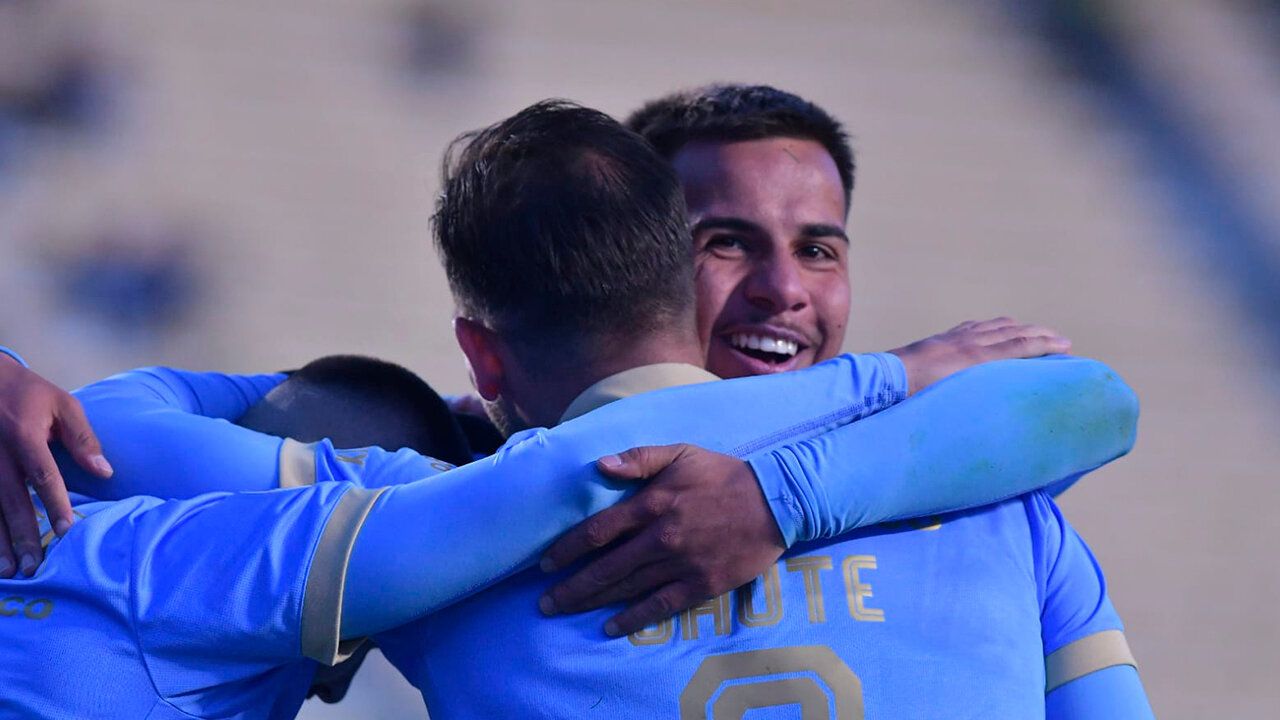 Festejo de los jugadores celestes, tras el primer gol. APG