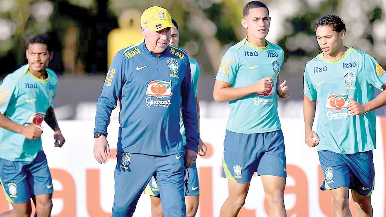 Carlo Ancelotti dirigiendo a Brasil./ LA NACIÓN
