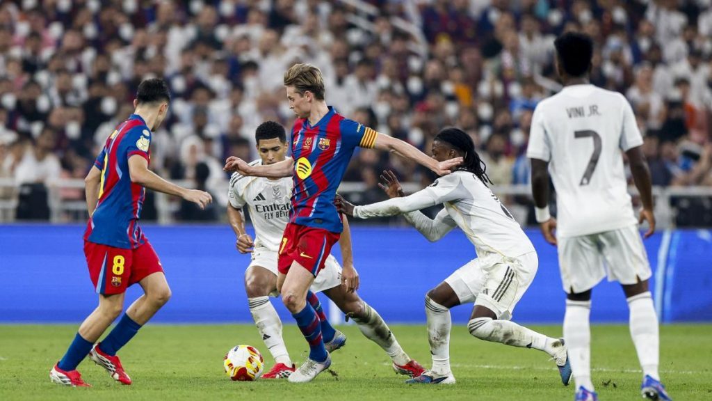 Frenkie de Jong fue, junto al MVP Raphinha Dias, uno de los futbolistas más destacados de la final de la Supercopa que ganó el FC Barcelona en Jeddah ante el Real Madrid (3-2). Tanto fue asà que el centrocampista azulgrana estaba jugando su mejor final desde que está en el club y probablemente uno de sus mejores partidos hasta que una falta cometida en el minuto 90 sobre Kylian Mbappé, al intentar recuperar la pelota, le costó una expulsión directa que obligó al posterior campeón a sobrevivir en inferioridad.
