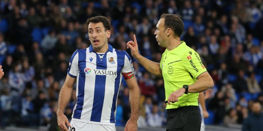 Viene de liarla en Copa en el Talavera-Real Madrid con varias acciones más que polémicas en el área. Con la Real tiene un balance ligeramente positivo en Liga. Son seis victorias, tres empates y cinco derrotas, a los que hay que sumar dos triunfos más en Copa ante rivales de menor entidad. El último partido con él fue el curso pasado en el 2-2 en casa del Villarreal. Y el último triunfo con él fue ante el Barça, con el gol de Becker, la temporada pasada.