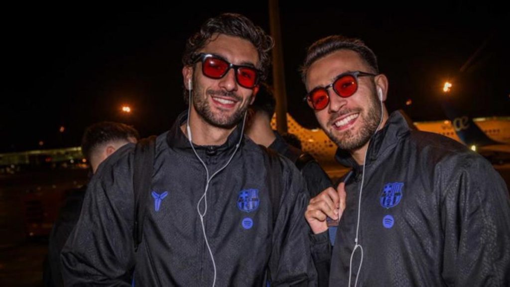 Joan Garcia y Frenkie de Jong, tras aterrizar con el Barça en Madrid
