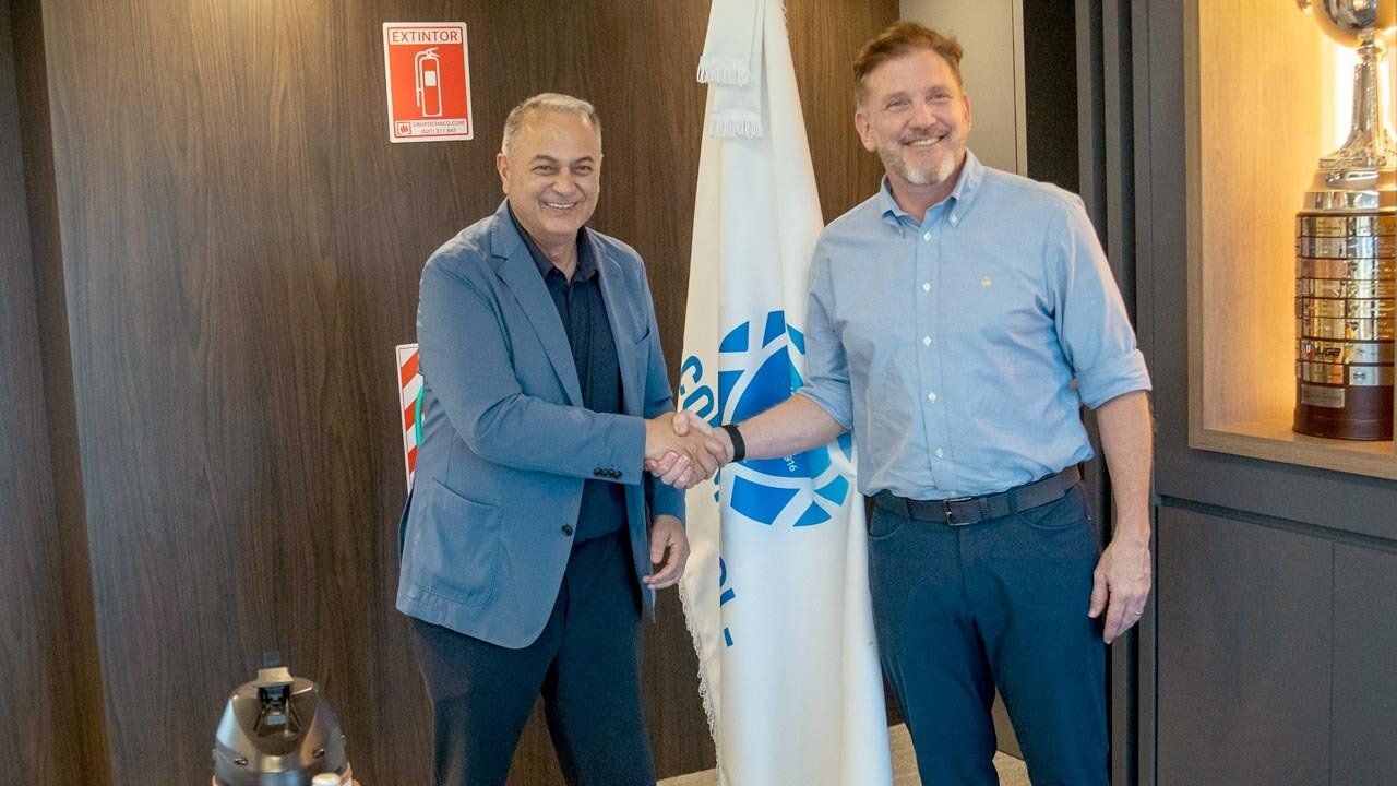 El presidente de la Conmebol, Alejandro Domínguez (der.), junto al mandamás de la FBF, Fernando Costa./ ALEJANDRO DOMINGUEZ