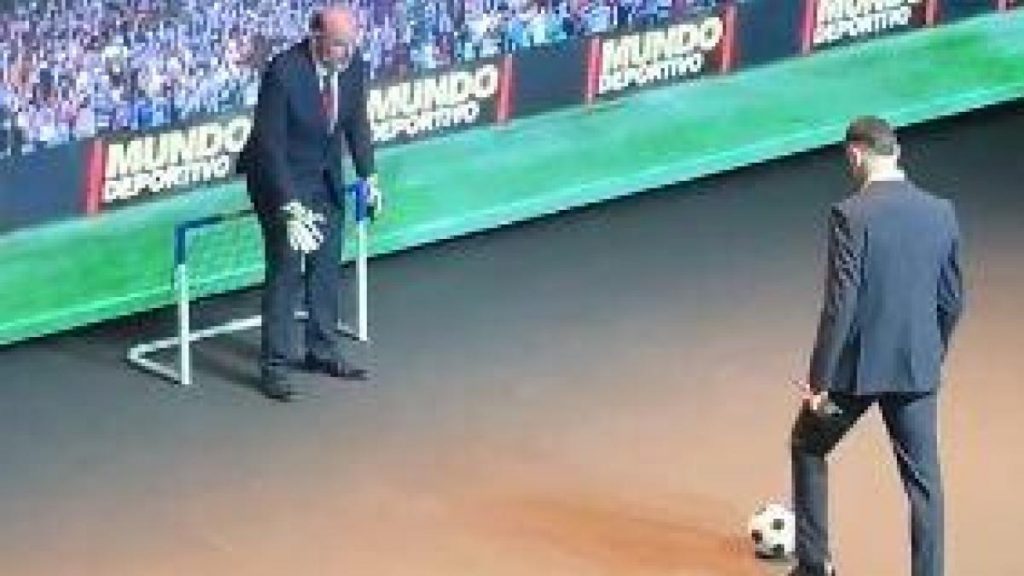 Joan Garcia recibió el premio de manos de Eva Franqués , directora de Comunicación de El Corte Inglés Catalunya y luego protagonizó una escena original y divertida. En el escenario apareció una porterÃa virtual con las medidas reglamentarias que fue inmediatamente cambiada por un marco minúsculo a instancias de Jordi Basté, al proponerle el reto al portero que, por una vez, él tirarÃa un penalti en vez de pararlo, con el presentador de la Gala MD de improvisado arquero. Aunque el chut de Joan fue entre palos no habÃa forma humana de hacer gol. Joan habÃa recordado previamente que «de muy pequeño hice de jugador de campo, pero no era lo mÃo y hacia los seis años ya me puse de portero; por eso dejo tirar los penaltis a los que saben».