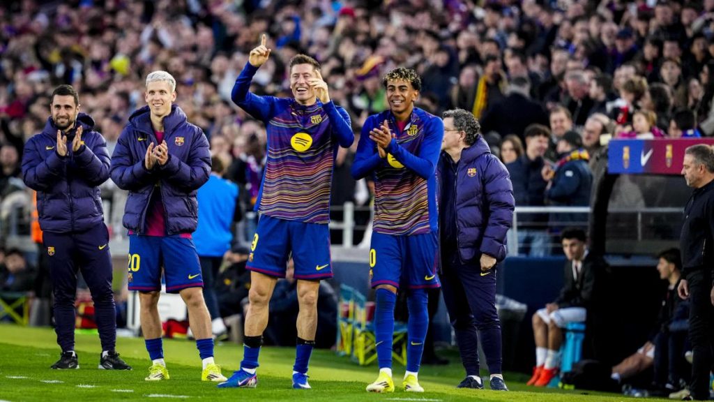 Lamine Yamal no dejó de aplaudir hasta que Bernal lo vio en la banda, momento en el que el extremo le hizo un gesto para elogiar su enorme definición ante Leo Román.Â
