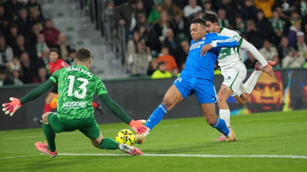 Iñaki Peña, portero de 26 años cedido por el Barça al Elche, fue uno de los grandes protagonistas del empate de su equipo ante el Real Madrid (2-2). Con cinco paradas de mérito impidió que el lÃder sumara tres puntos y posibilitó que el club azulgrana al que pertenece hasta 2029 se colocara a un punto en la Liga.