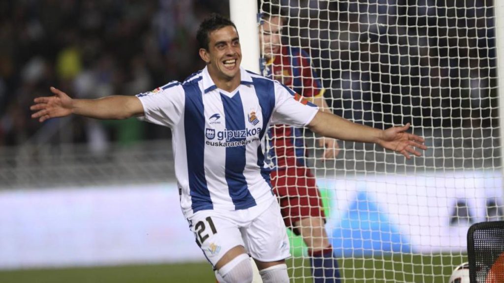 Sheraldo Becker celebra el gol ante el Barcelona con la Real Sociedad