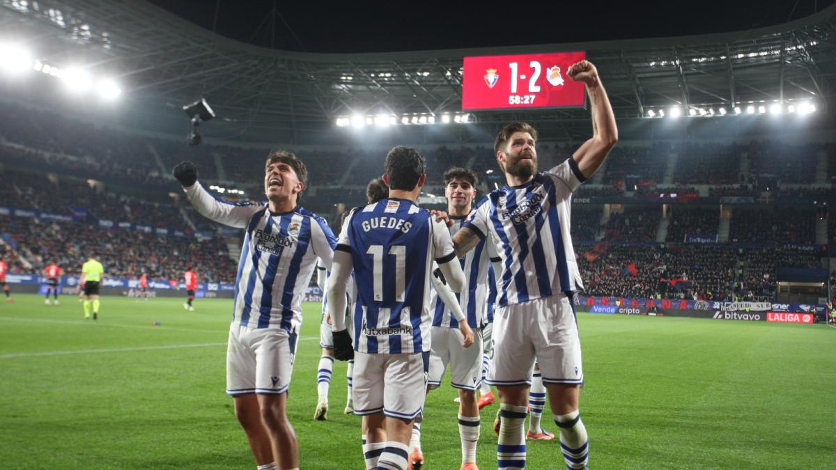 Aleluya. La Real Sociedad acabó de una tacada y por la puerta grande con dos crÃmenes como no haber ganado fuera de casa en siete meses y, sobre todo, no saber remontar un partido en casi dos años. Se acabó. Qué victoria txuri urdin ante Osasuna con total merecimiento, tras una brillante segunda mitad con gol de Brais y golazos de Guedes y sobre todo Barrenetxea para asaltar El Sadar con firmeza, confirmar la mejorÃa colectiva y dar un paso adelante importantÃsimo como proyecto. Es la quinta jornada sin perder, son 11 puntos de 15 y unas sensaciones muy distintas, aunque haya mucho por avanzar aún. Seis puntos de margen con el descenso y Osasuna muy tocado, decimoséptimo y a merced del Girona para caer o no a la zona caliente esta jornada. Sergio Francisco sale reforzado, Lisci muy señalado.