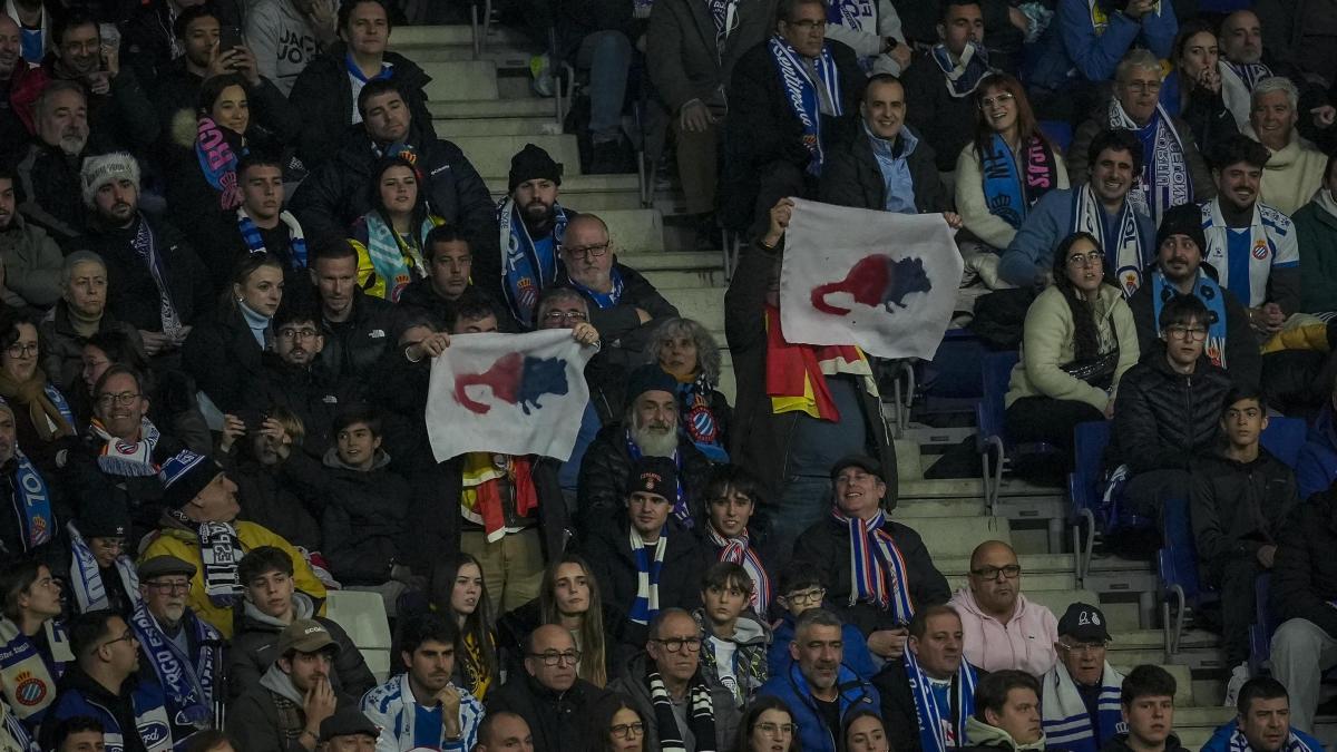 8. En el minuto 14 de partido, un grupo de aficionados locales ubicados en Gol Cornellá, sectores 109, 110, y 111 e integrantes de la grada de animación “Grada Canito�, exhibieron durante 1 minuto carteles con el dibujo de una rata, momento en el que encendieron un bote de humo en dicha zona, siendo perceptible visualmente.