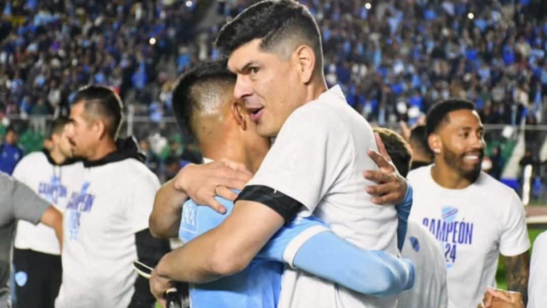 Ramiro Vaca y Carlos Lampe abrazándose tras una conquista celeste. FACEBOOK CARLOS LAMPE.