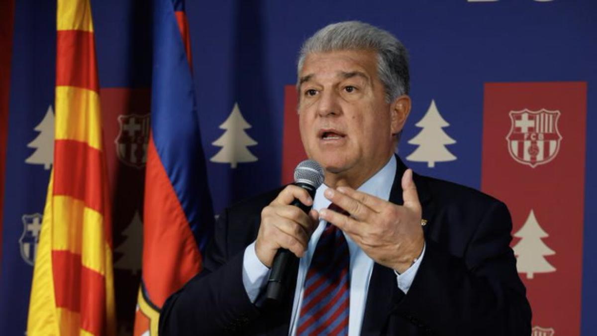 Joan Laporta, durante su discurso en la cena de Navidad del FC Barcelona