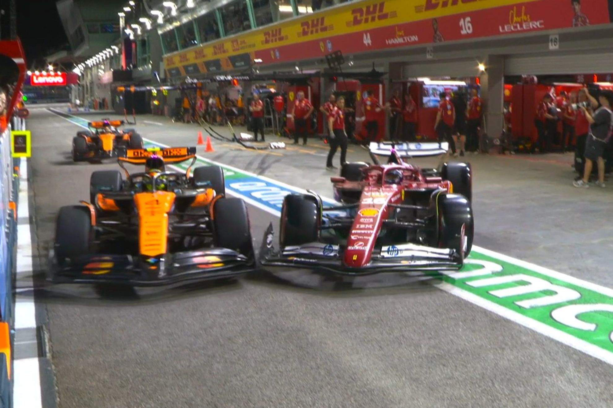 El carril de boxes del Gran Premio de Singapur ha sido, históricamente, un juez del Mundial de Fórmula 1. Ya ocurrió en la primera edición de la historia en Marina Bay (2008) cuando Felipe Massa sufrió problemas con su manguera para el repostaje y después vino todo aquello del crashgate. Y quién sabe si en 2025 podría afectar. De momento, uno de los favoritos a todo sufrió problemas en ese delicado carril de vuelta al circuito.Massa, en en momento de arrancar la manguera en Singapur 2008.EFELando Norris, segundo en el campeonato tras su compañero Oscar Piastri, sufrió uno de los accidentes tontos de la jornada de viernes del Gran Premio. Un incidente extraño, pero sí importante porque fue causado por Charles Leclerc, otro de los favoritos a llevarse la victoria bajo los focos del domingo. Los dos coches salían del box, cuando el monegasco no midió su incorporación, contactó con Norris y le envió, a muy bajavelocidad, a tocar con una de las paredes del muro de boxes.Es una situación complicada. Le costó más caro a Norris, que rompió su alerón delantero. Y podría tener causa a un Leclerc que será investigado por una maniobra delicada. Es raro ver un castigo en los libres, pero los comisarios podrían castigar al líder de Ferrari con algo más que el tradicional apercibimiento de los libres. El unsafe release es evidente.»He chocado. Ha ido contra mí directamente», recalcó Norris por la radio. Después no se sintió nada cómodo en sus vueltas rápidas y lo dejó claro por la radio. «El coche no es el que está a medio segundo, soy yo el que lo estoy», explicó a su ingeniero. No son las mejores sensaciones.El coche no es el que está a medio segundo, soy yo el que lo estoyLando NorrisAdemás de protagonizar el golpe, ni Norris ni Leclerc mostraron su mejor versión después del viernes. El británico se quedó quinto a medio segundo (+0.483) del 1:30.714 de Oscar Piastri -también superado por Verstappen, Hadjar y Alonso- y deberá exprimir más a su McLaren. Leclerc, por su parte, fue incapaz de cerrar una buena vuelta y se quedó a siete décimas en novena posición. Por lo menos, mejoró el tiempo de un Lewis Hamilton que dejó marcas de su Ferrari en varios muros de la Marina Bay.