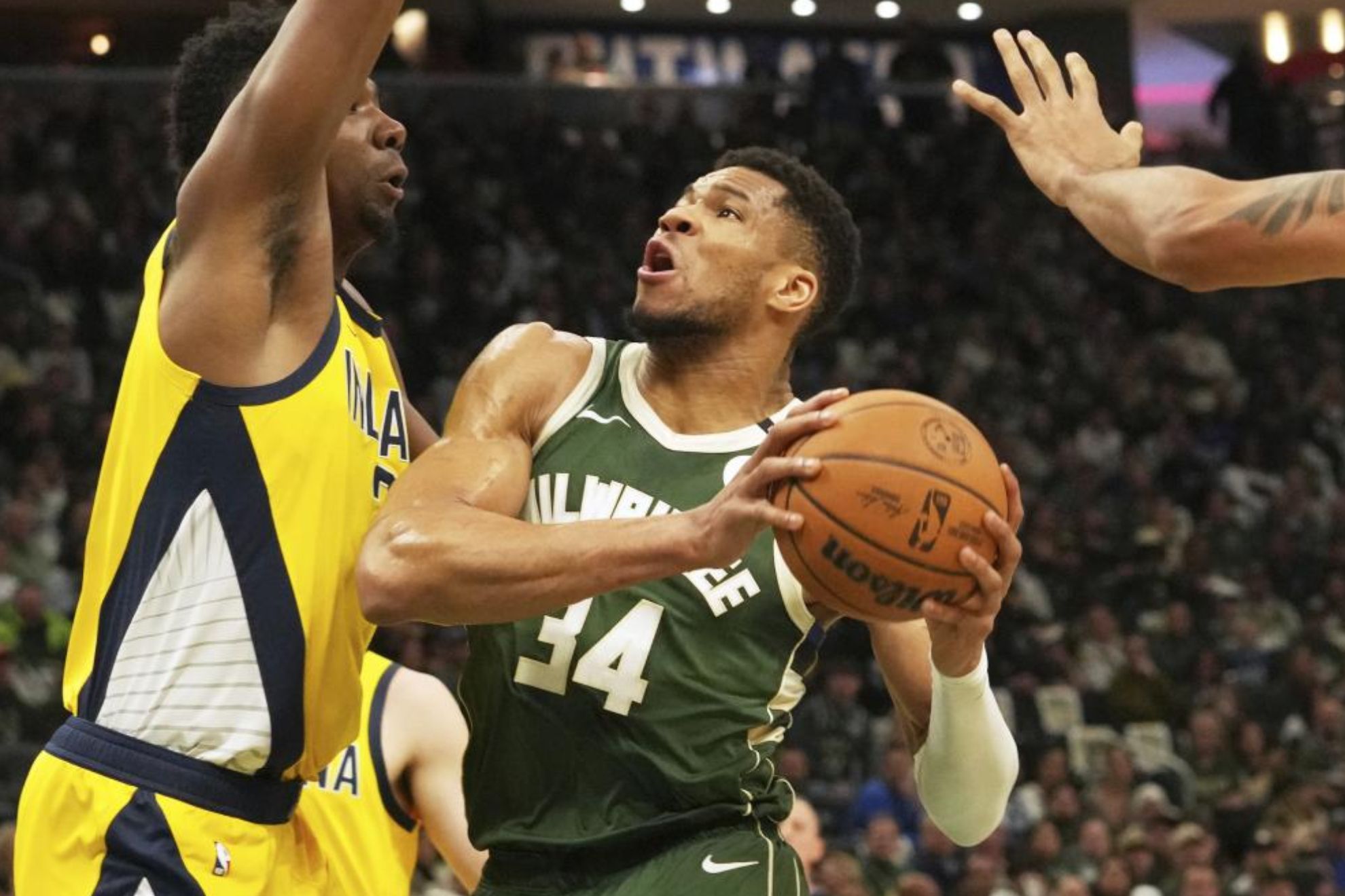 Giannis Antetokounmpo y Gary Trent Jr. brillaron este viernes con 37 puntos cada uno para que los Milwaukee Bucks doblegaran por 117-101 a los Indiana Pacers y colocaran el 1-2 en esta serie de primera ronda del Este.Milwaukee acogerá también el cuarto partido este domingo.Antetokounmpo se lució con 37 puntos y un excelente 14 de 19 en tiros de campo y un 9 de 10 desde la línea de personal. El gigante griego se acercó además al triple-doble con 12 rebotes y 6 asistencias.Los Bucks se vieron lastrados por un Damian Lillard desacertado (7 puntos con 2 de 12 en tiros) pero a cambio disfrutaron de un recital de Trent Jr., que deslumbró con 37 puntos (11 de 16 en tiros con un impresionante 9 de 12 en triples).Después de sufrir dos derrotas seguidas en Indiana ante los Pacers (cuartos del Este), los Bucks (quintos), que llegaron a perder esta noche por 12 en el segundo cuarto, respondieron con un contundente 39-18 en el tercer capítulo que les puso ya en camino de un triunfo muy necesario para los de Doc Rivers.Gary Trent Jr. entre Pascal Siakam y Andrew Nembhard.LAPRESSE.En los Pacers, Pascal Siakam fue el máximo anotador con 28 puntos (12 de 19) mientras que Tyrese Haliburton se quedó en 14 puntos (5 de 11), 7 rebotes y 10 asistencias. Indiana sufrió desde el perímetro con un 13 de 41 en triples (31,7 %).