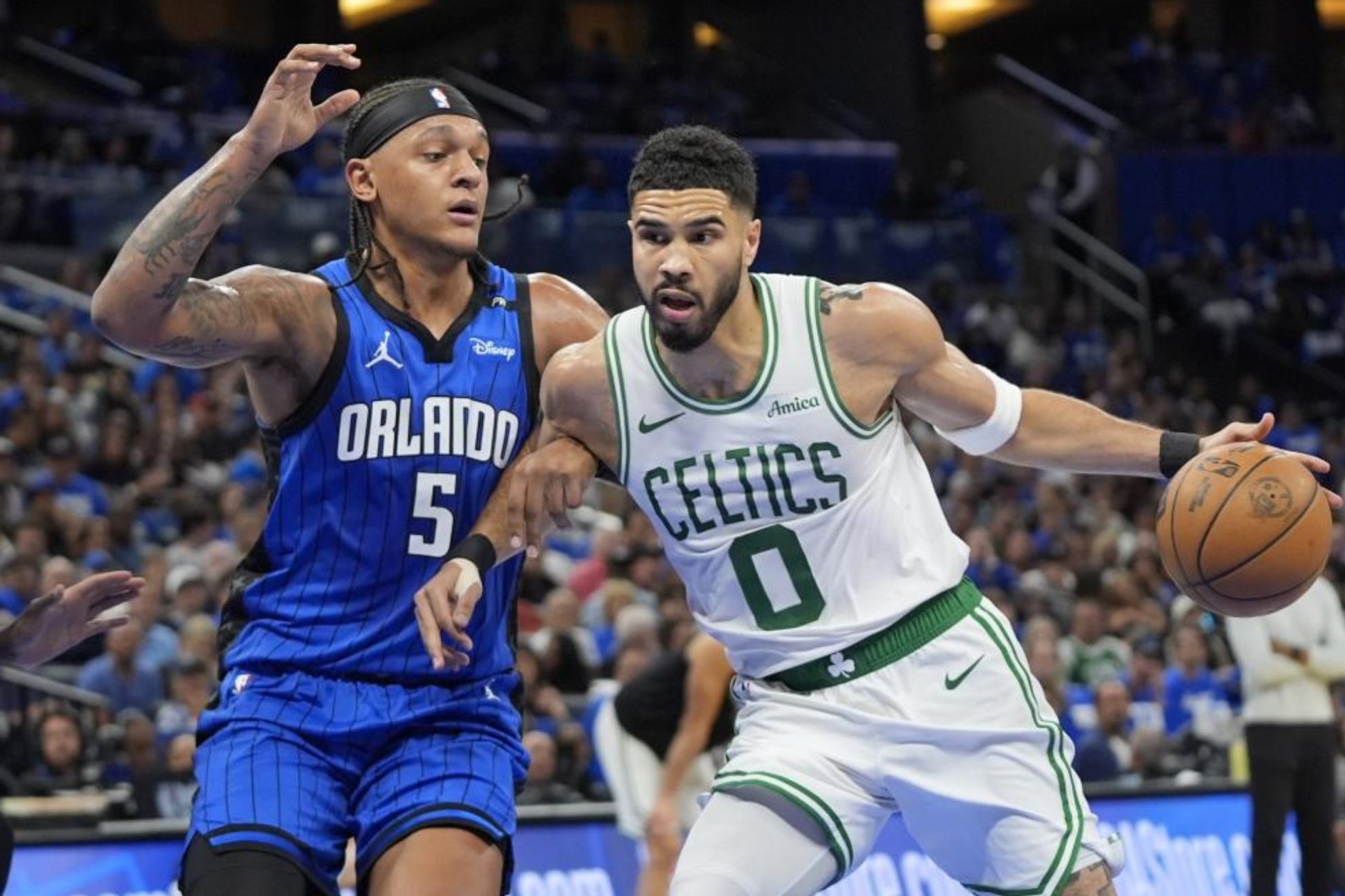 Jayson Tatum regresó este viernes pero los Boston Celtics cayeron por 95-93 ante unos Orlando Magic incansables en defensa, lo que deja esta serie de primera ronda del Este en 1-2.El cuarto encuentro se jugará este domingo también en Orlando.Tatum se perdió el segundo encuentro de la eliminatoria entre los Celtics (segundos del Este) y los Magic (séptimos) por problemas en la muñeca, pero este viernes salió como titular en los de verde y fue el más productivo con 36 puntos (10 de 22 en tiros de campo con 4 de 10 en triples) y 9 rebotes.Jaylen Brown entra a canasta ante Franz Wagner.LAPRESSE.No obstante, Tatum cometió 7 de las 21 pérdidas de balón de unos Celtics que sufrieron ante la presión y el músculo de los Magic, quienes dejaron a Boston en 9 de 27 en triples (33,3 %).Jaylen Brown (19 puntos y 6 rebotes con 6 pérdidas) y Derrick White (16 puntos) acompañaron a Tatum en Boston, que no contó esta noche con Jrue Holiday.Franz Wagner captura un rebote ante Luke Kornet.LAPRESSE.Por los Magic, Franz Wagner fue el máximo anotador con 32 puntos (11 de 27 en tiros con 3 de 13 en triples), 7 rebotes y 8 asistencias. Paolo Banchero sumó 29 puntos (10 de 25) y 6 rebotes.Fue un partido de rachas para unos y otros, de inconsistencias en ambos lados y de igualdad hasta el final. Boston fue ganando de 11 puntos en el segundo cuarto y Orlando llegó a mandar por 12 en el último, pero a falta de 2.32 el marcador reflejaba empate (91-91).Dos canastas seguidas de Wagner atacando a un Kristaps Porzingis desacertado impulsaron a los locales, pero White mantuvo a los visitantes en el encuentro (95-93 con 28.1 por jugarse).Orlando no pudo sentenciar en ataque pero solo dejó 0.3 segundos para Boston, que no pudo sellar el milagro a última hora.