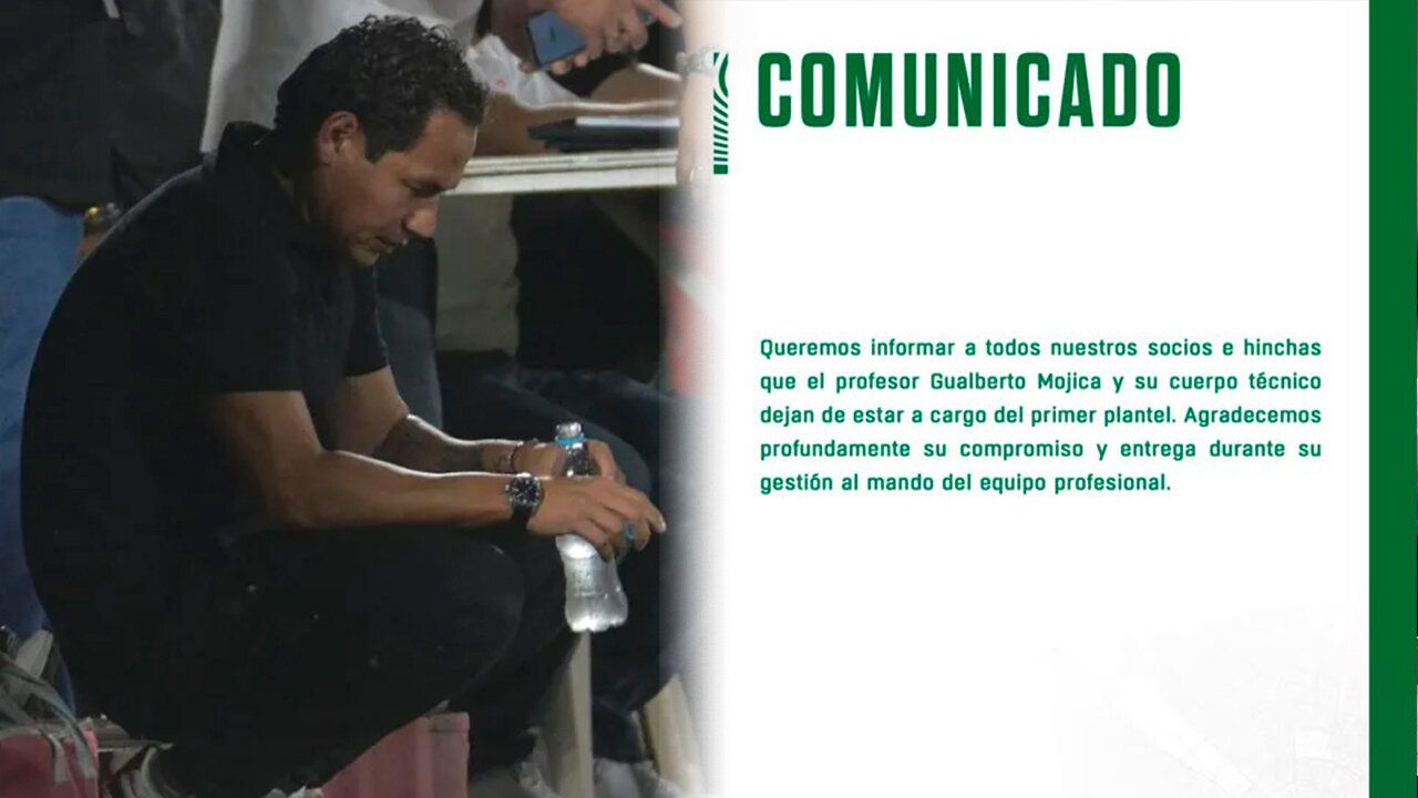 «Queremos informar a todos nuestros socios e hinchas que el profesor Gualberto Mojica y su cuerpo técnico dejan de estar a cargo del Primer Plantel. Agradecemos profundamente su compromiso y entrega su gestión al mando del equipo profesional», escribió el club en un comunicado.
