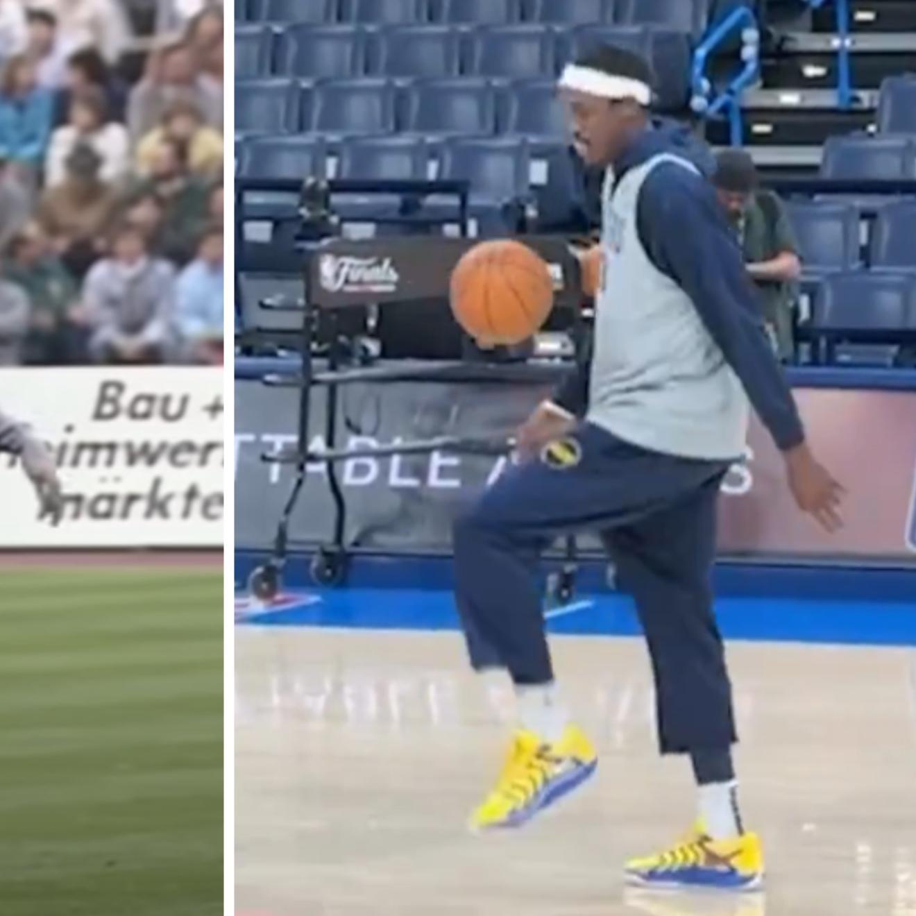 Antes del tercer partido de las Finales en el que los Pacers se impusieron a los Thunder (116-117) tuvo lugar uno de los momentos más entrañables y emotivos de estos playoffs de la NBA. Sucedió cuando Pascal Siakam, una de las estrellas de los Pacers, emuló el que a juicio de muchos fue el calentamiento más famoso de la historia del deporte. Y no, no tiene que ver con el baloncesto, si no con el fútbol.El ala-pívot camerunés de 2,06 m y 31 años, como si de un delantero centro gigantesco se tratase, cogió el balón de baloncesto momentos antes del entrenamiento de los Pacers, y con la música de ‘Live is life’ del grupo austriaco Opus sonando de fondo en el pabellón, se puso a darle toques con sus pies, con su cabeza y hasta con sus hombros emulando lo que Diego Armando Maradona había hecho hace 36 años en un calentamiento con el Nápoles.’El pelusa’ dejó esas imágenes para la posteridad un 19 abril de 1989, antes del partido de vuelta de la semifinal de la UEFA que enfrentó a su Napoles y al Bayern. Diego agarró el balón y, con la música del ‘Live is life’ de Opus retumbando en el Olímpico de Múnich, se puso a dar toques al balón pasándola de un pie a otro, después a las rodillas y a los hombros, hasta dormirla con la cabeza.Más de 30 millones de visualizacionesEl astro argentino dejó una secuencia inolvidable de más de cuatro minutos y que sobrepasa los 30 millones de reproducciones en YouTube, sesenta veces más que el video del partido, en el que el Nápoles empató 2-2 (goles de Caraca asistido en ambos por Maradona) y acabó pasando por un global de 4-2 y acabó ganando el título tras derrotar al Stuttgart en la final.Diego Armando Maradona (Nápoles) y Pascal Siakam (Indiana Pacers).LUIS GABRIEL/LAPRESSEEse año Paskal Siakam ni siquiera había nacido (lo hizo el 2 de abril de 1994), pero de alguna manera quiso homenajear al mito argentino. Y lo hizo a lo grande y con más dificultad si cabe, ya que mide 2,03 m y utilizó un balón de baloncesto, más grande y pesado. Eso no fue óbice para que, como Maradona entonces, empezase a darle toques con sus pies, su cabeza y hasta sus hombros sin que este tocase el suelo durante un minuto y medio y con la célebre canción de Opus de fondo hasta un total de ¡131 toques! dejando atónitos a los compañeros y periodistas allí presentes.