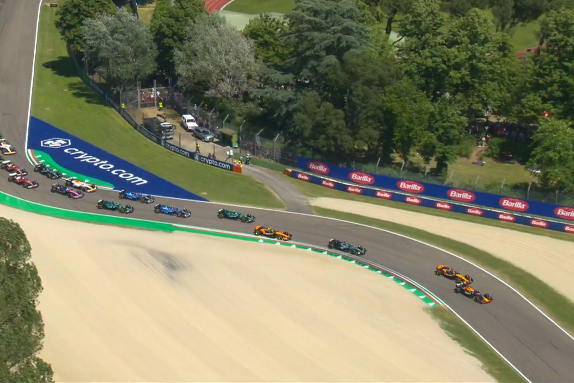 El humo rojo de los tifosi de Ferrari está presente (pese a los pésimos resultados). Más de 240.000 espectadores llenan las gradas durante todo el fin de semana, un récord en el Autodromo Enzo e Dino Ferrari de Ímola. La salida del Gran Premio de la Emilia Romagna es, año tras año, uno de los mejores momentos de la Fórmula 1. Un regalo para los aficionados, tanto devotos como casuales. Y no decepcionó, con varios movimientos brutales para dejar una ‘arrancada’ tremenda.Max Verstappen se colocó al frente de la carrera en Ímola con una de sus mejores arrancadas. No acertó al soltar el embrague en el encendido de semáforos y tanto el ‘poleman’ Oscar Piastri como George Russell -iniciaba 3º- le agobiaron. Pero el neerlandés ofreció uno de sus trucos que dejó a todo el mundo pasmado.Entrando en la primera curva, Verstappen interpretó que tenía que alargar su frenada. La llevó al máximo, lanzó el coche tarde y lo dejó correr. Piastri, que creía que tenía las de ganar, se confió y el campeón se coló por el exterior. Un movimiento brutal, otro regalo de Verstappen para los sentidos.»¿Qué demonios hace Piastri?», dijo Russell a través de la radio. Veía como podía atacar, pero el colapso del australiano no le dejó más movimientos. Y Verstappen, que había caído con el de McLaren, en los inicios de carrera de Jeddah y Miami, por fin se salía con la suya.¿Qué demonios hace Piastri?George RussellNo fue lo único del inicio. También Fernando Alonso, el que mejor sale desde donde sea, dejó su marca al mejorar la arrancada de Lando Norris. Quiso emparejarse, forzó al británico y no pudo pasar. Pero ya es un mensaje. Esas son las manos del asturiano. Unas que no tuvo poco después Pierre Gasly al dejarse buena parte de sus opciones en un paralelo con Charles Leclerc. Se fue a la tierra y cayó en la tabla.