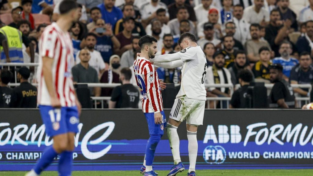 �lex Baena, futbolista del Atlético de Madrid y Fede Valverde, jugador del Real Madrid, se las tuvieron tiesas en el derbi que sus dos equipos disputaron en Jeddah, en la segunda de las semifinales de la Supercopa de España.