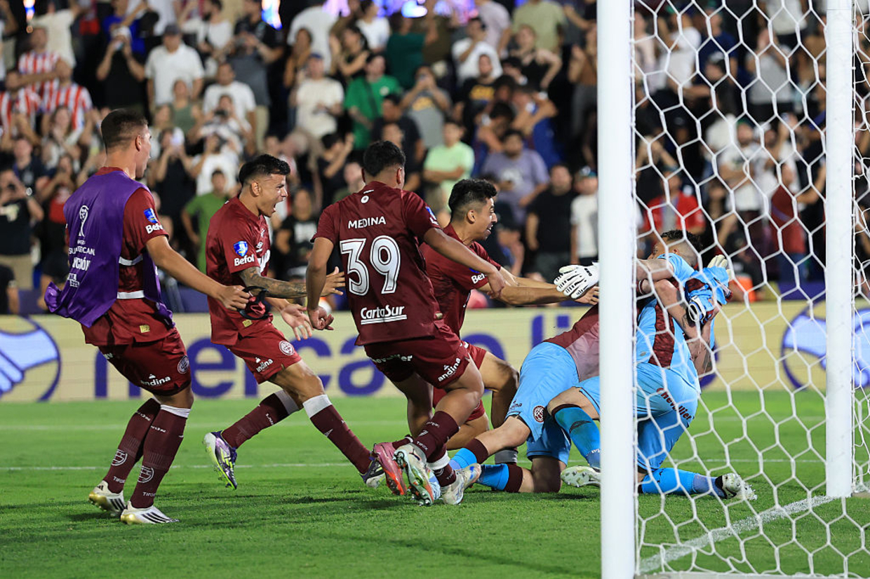 Foi um começo de jogo de poucos riscos dos dois lados no início. Com seu ponto de equilíbrio no meio, Alan Franco, liberado para jogar, o time de Jorge Sampaoli buscou o controle do jogo e mostrou paciência para trabalhar a bola. O Lanús chamou o rival para seu campo para buscar a saída rápida.