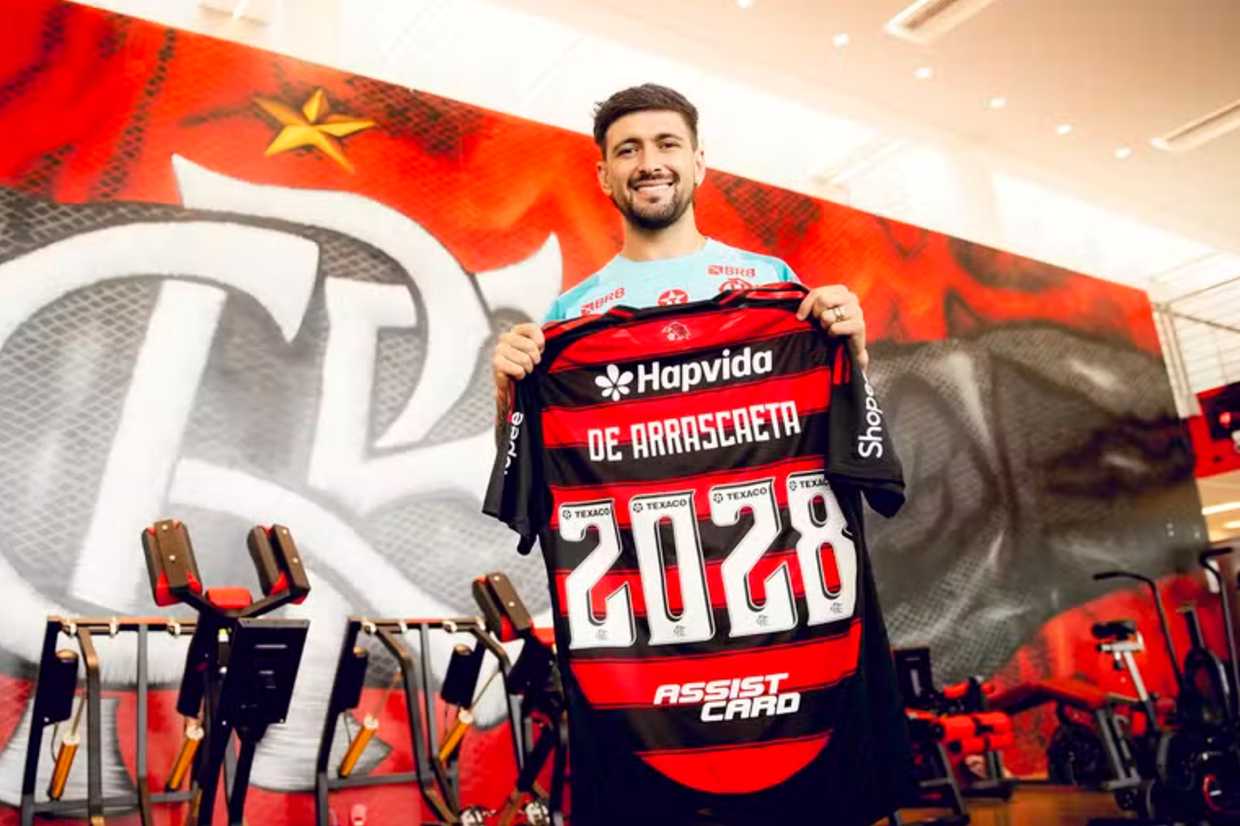 O Flamengo anunciou, neste sábado, a renovação de contrato com De Arrascaeta. O uruguaio, que tinha contrato até o fim de 2026, assinou agora até o final de 2028, com a possibilidade de um quarto ano a depender de metas já estipuladas.