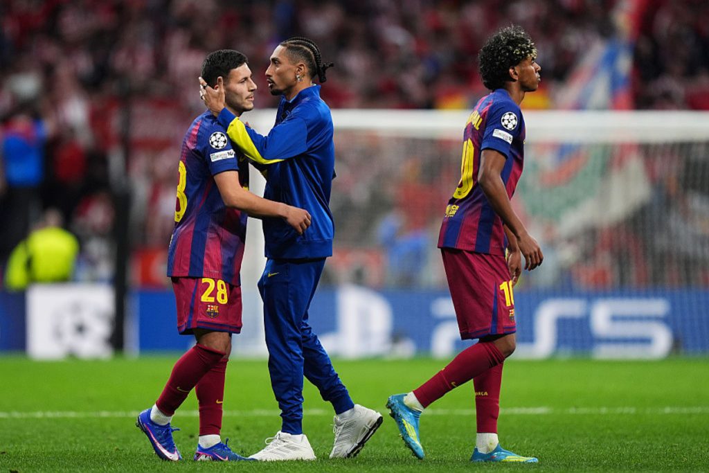 Raphinha não entrou em campo nas quartas, ainda se recuperando de lesão, mas esteve no Metropolitano com os companheiros. O Barcelona caiu pela terceira vez seguida nas quartas para o Atlético de Madrid, que volta a uma semifinal após nove anos.