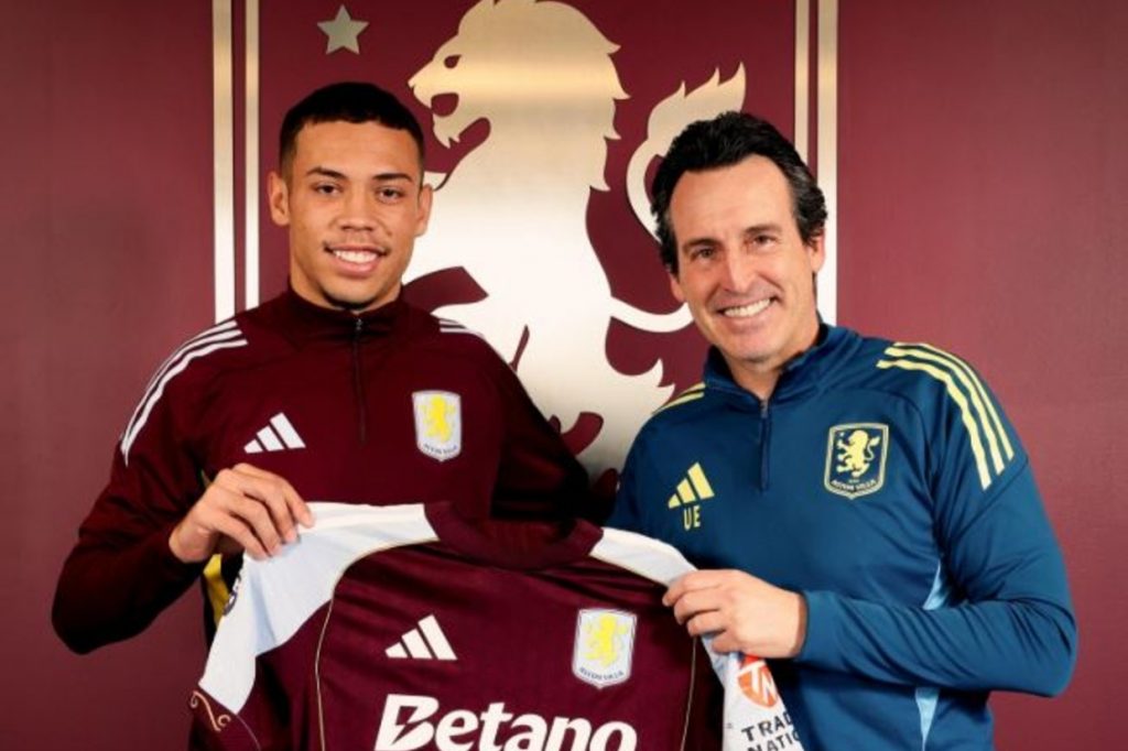 O ponta brasileiro recebeu a camisas 47 do Aston Villa. O clube vive grande momento na Inglaterra, com o terceiro posto da Premier League, atrás apenas de Arsenal e Manchester City.