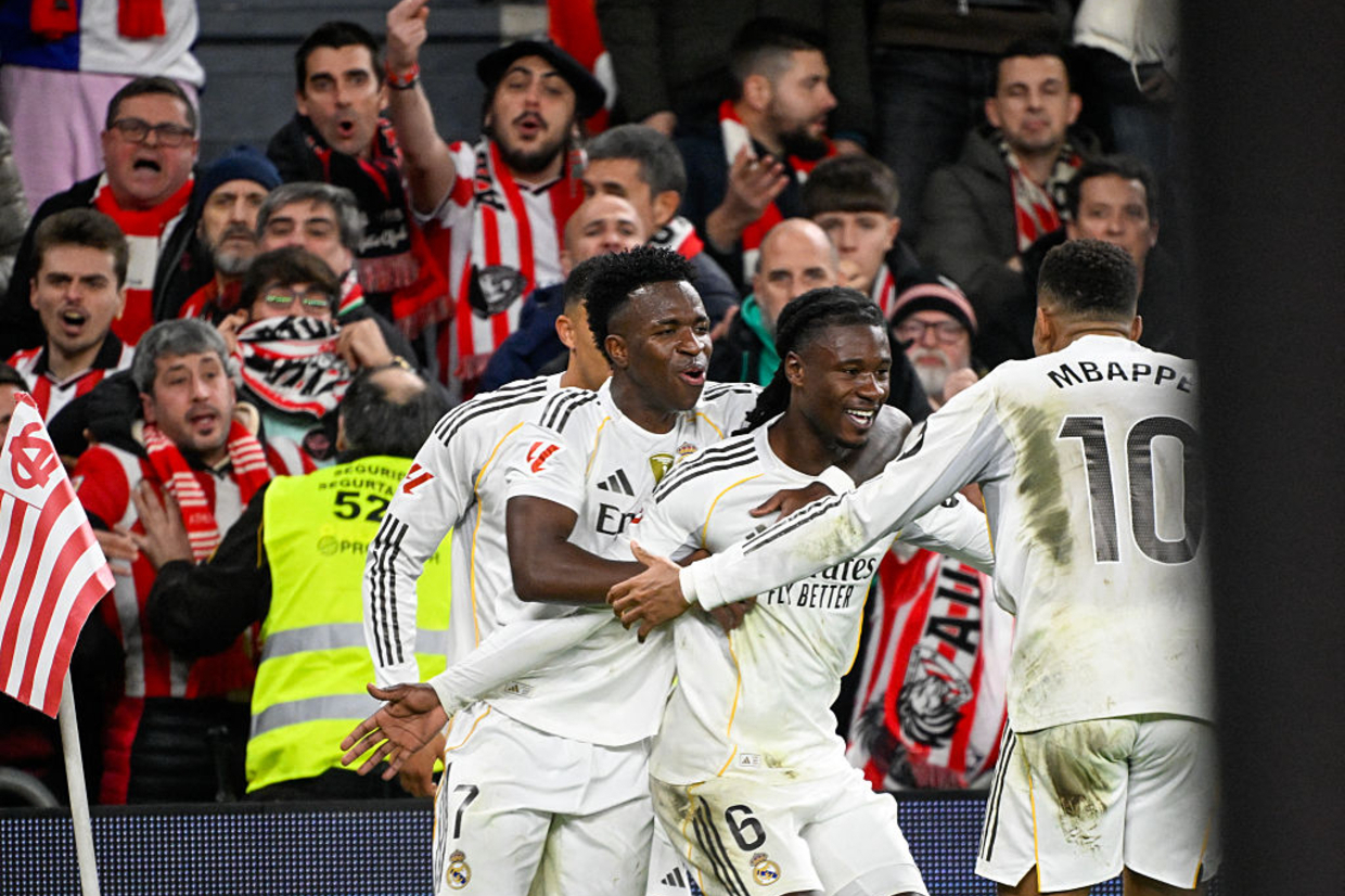 O gol cedo deixou a partida aberta. Os donos da casa usaram o lado esquerdo com Nico Williams e produziram chances perigosas de empatar, mas esbarraram em Courtois. O Real respondeu constantemente com jogadas de bolas longas e contragolpes letais.