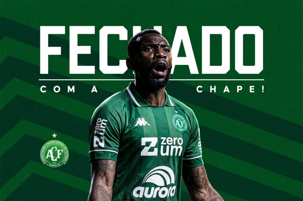 O atacante congolês, de 36 anos, estava livre no mercado e foi convencido por Alex Passos, presidente da Chape, a topar o desafio de defender a equipe catarinense até o fim da temporada.